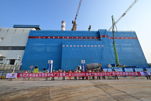 国能东营胜利电厂主厂房封顶